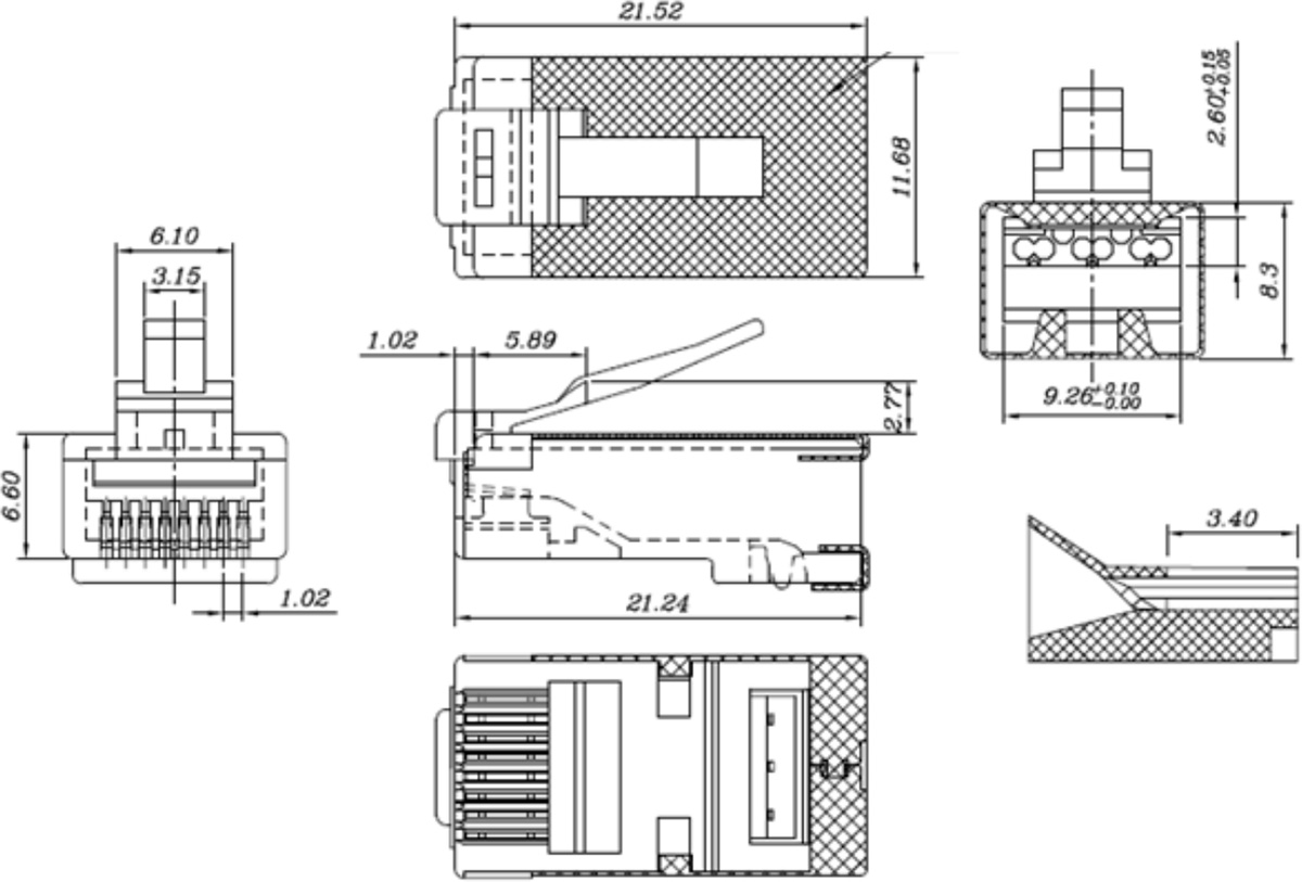 ● Follow IEC 60603-7 series for RJ45 8-way Connector